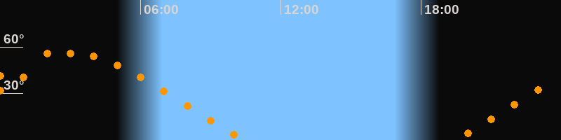 | Aufgang | 19:26 Uhr im Nordosten (αAz = 62,2°) |