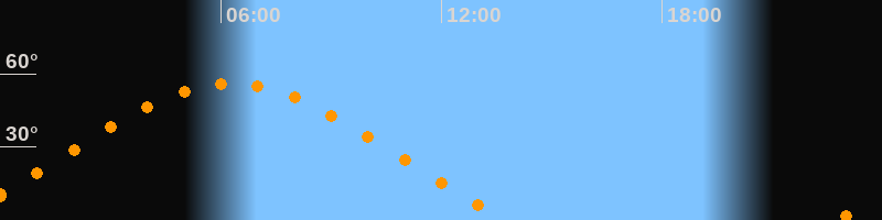 | Höchster Stand (Kulmination) | 06:17 Uhr (h = 56°) |