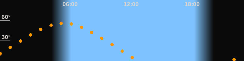| Höchster Stand (Kulmination) | 06:13 Uhr (h = 56°) |