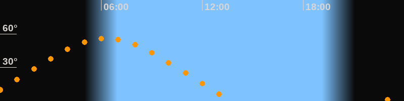 | Höchster Stand (Kulmination) | 06:18 Uhr (h = 56°) |