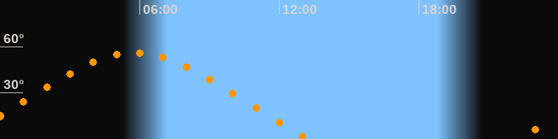 | Untergang | 13:15 Uhr im Nordwesten (αAz = 297,8°) |