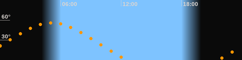 | Höchster Stand (Kulmination) | 05:06 Uhr (h = 56°) |