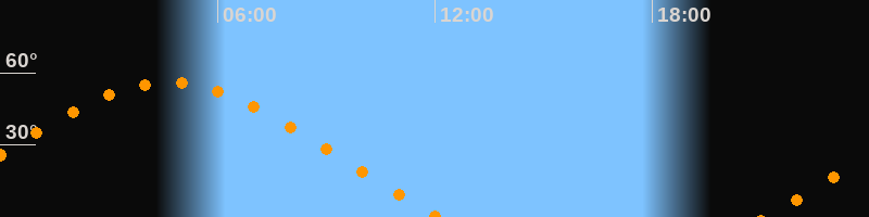 | Untergang | 12:07 Uhr im Nordwesten (αAz = 297,8°) |