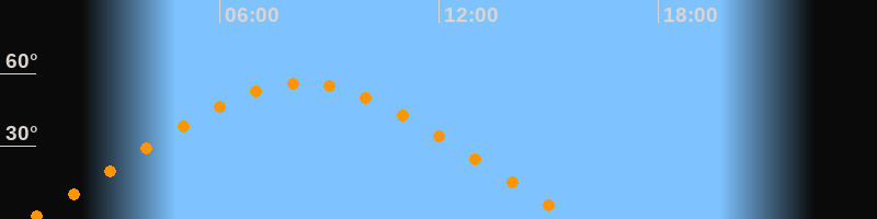 | Höchster Stand (Kulmination) | 08:15 Uhr (h = 56°) |