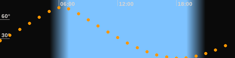 | Höchster Stand (Kulmination) | 06:17 Uhr (h = 78,6°) |