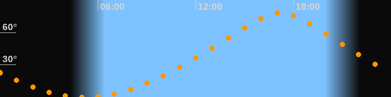 | Höchster Stand (Kulmination) | 17:11 Uhr (h = 78,6°) |
