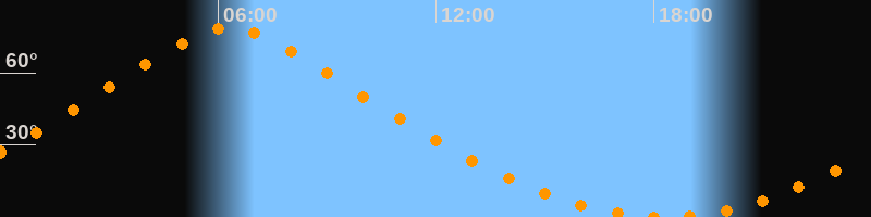 | Höchster Stand (Kulmination) | 06:18 Uhr (h = 78,6°) |