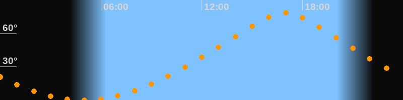 | Höchster Stand (Kulmination) | 16:56 Uhr (h = 78,6°) |