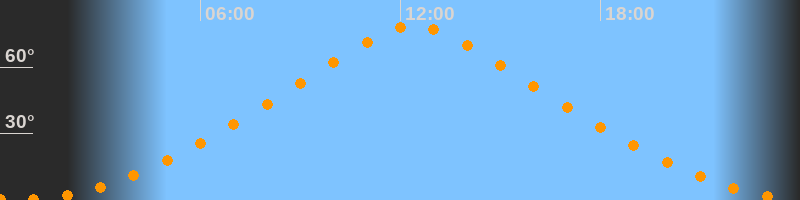 | Höchster Stand (Kulmination) | 12:25 Uhr (h = 78,6°) |