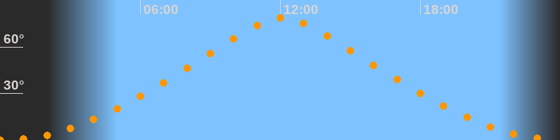 | Höchster Stand (Kulmination) | 12:06 Uhr (h = 78,6°) |