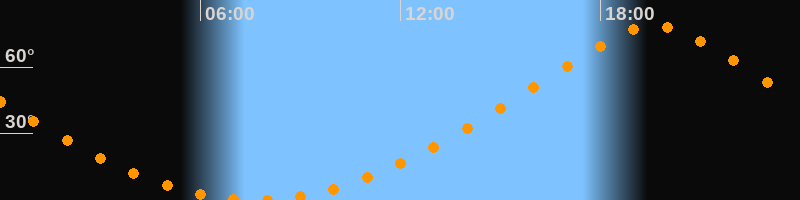 | Höchster Stand (Kulmination) | 19:38 Uhr (h = 78,6°) |