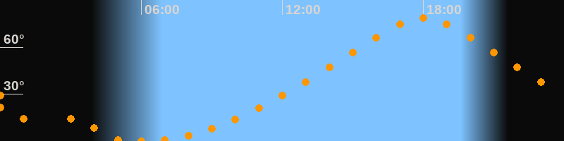 | Höchster Stand (Kulmination) | 18:00 Uhr (h = 78,6°) |