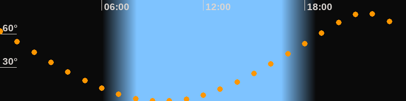 | Höchster Stand (Kulmination) | 21:33 Uhr (h = 78,6°) |