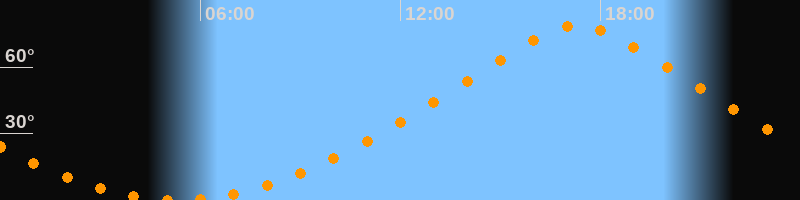 | Höchster Stand (Kulmination) | 17:19 Uhr (h = 78,6°) |