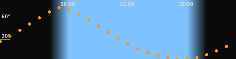 | Höchster Stand (Kulmination) | 06:19 Uhr (h = 78,6°) |