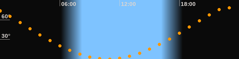 | Höchster Stand (Kulmination) | 22:49 Uhr (h = 78,6°) |