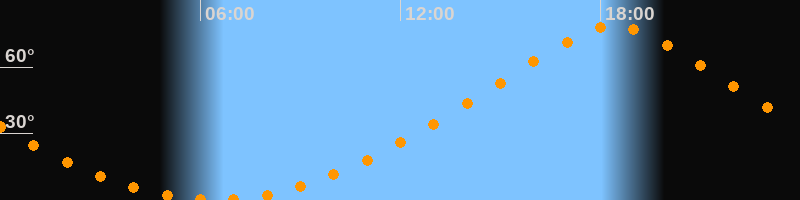 | Höchster Stand (Kulmination) | 18:24 Uhr (h = 78,6°) |