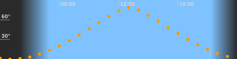 | Höchster Stand (Kulmination) | 13:06 Uhr (h = 78,6°) |