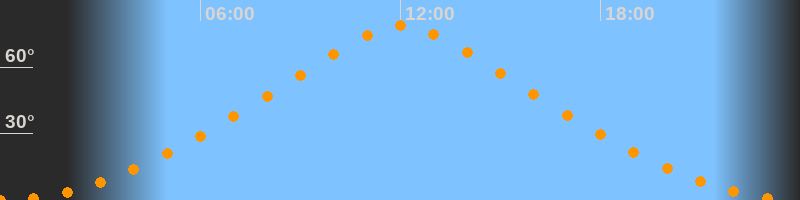 | Höchster Stand (Kulmination) | 12:01 Uhr (h = 78,6°) |