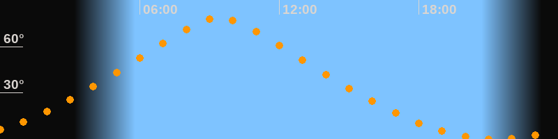 | Höchster Stand (Kulmination) | 09:25 Uhr (h = 78,6°) |