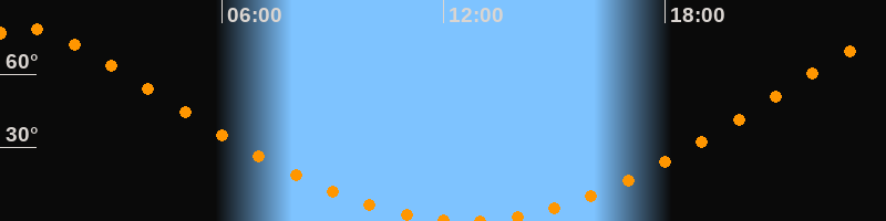 | Höchster Stand (Kulmination) | 00:37 Uhr (h = 78,6°) |