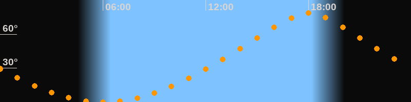 | Höchster Stand (Kulmination) | 18:00 Uhr (h = 78,6°) |