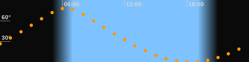 | Höchster Stand (Kulmination) | 06:20 Uhr (h = 78,6°) |