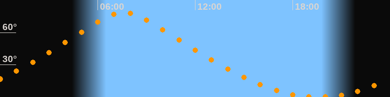 | Höchster Stand (Kulmination) | 07:36 Uhr (h = 78,6°) |