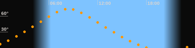 | Höchster Stand (Kulmination) | 08:25 Uhr (h = 73,5°) |