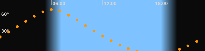 | Höchster Stand (Kulmination) | 06:06 Uhr (h = 73,5°) |