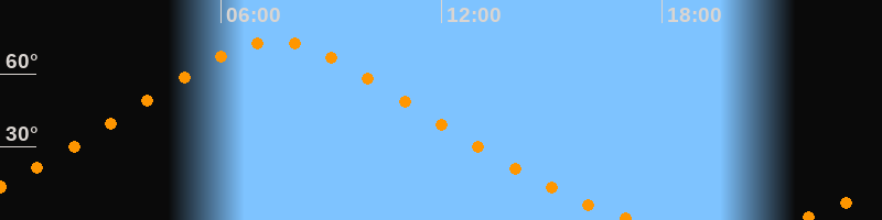 | Höchster Stand (Kulmination) | 07:29 Uhr (h = 73,5°) |