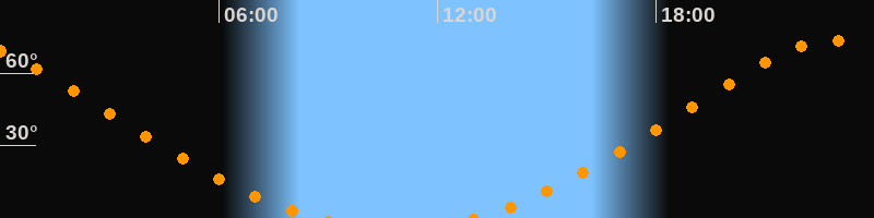 | Höchster Stand (Kulmination) | 22:49 Uhr (h = 73,5°) |