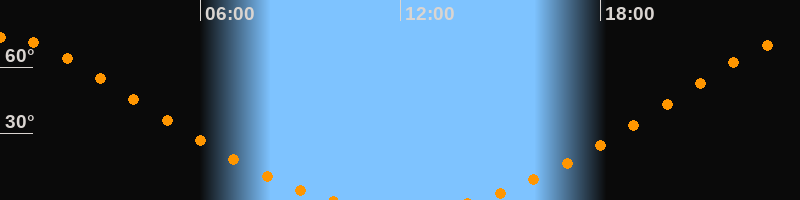 | Untergang | 10:00 Uhr im Nordwesten (αAz = 334,3°) |