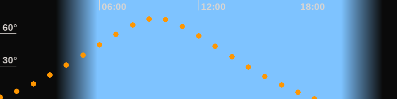 | Höchster Stand (Kulmination) | 09:25 Uhr (h = 73,5°) |