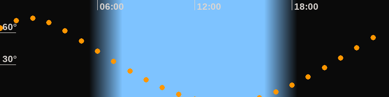 | Untergang | 11:43 Uhr im Nordwesten (αAz = 334,3°) |