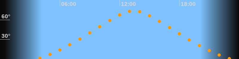 | Höchster Stand (Kulmination) | 13:25 Uhr (h = 73,5°) |