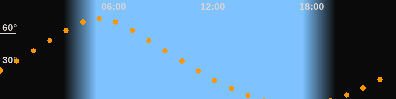 | Höchster Stand (Kulmination) | 05:59 Uhr (h = 73,5°) |