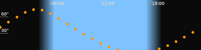 | Aufgang | 18:25 Uhr im Nordosten (αAz = 25,7°) |