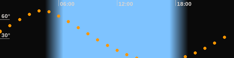 | Aufgang | 18:23 Uhr im Nordosten (αAz = 25,7°) |