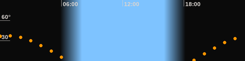 | Aufgang | 18:47 Uhr im Osten (αAz = 92°) |