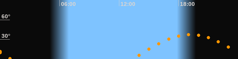 | Höchster Stand (Kulmination) | 19:11 Uhr (h = 37,5°) |