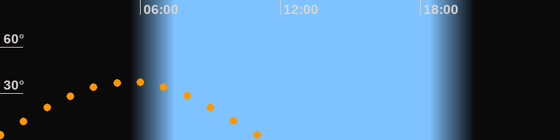 | Höchster Stand (Kulmination) | 05:31 Uhr (h = 37,5°) |