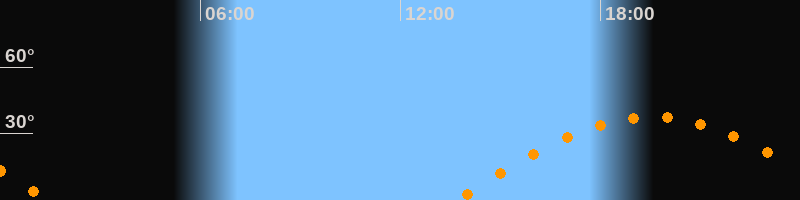 | Höchster Stand (Kulmination) | 19:32 Uhr (h = 37,5°) |