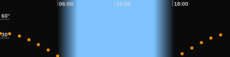 | Höchster Stand (Kulmination) | 00:16 Uhr (h = 37,5°) |
