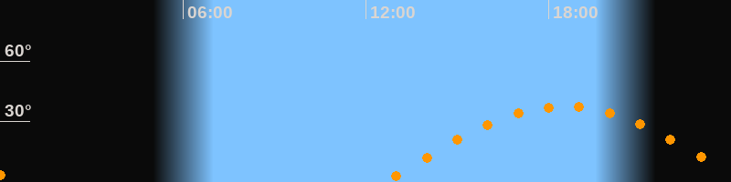 | Höchster Stand (Kulmination) | 18:31 Uhr (h = 37,5°) |