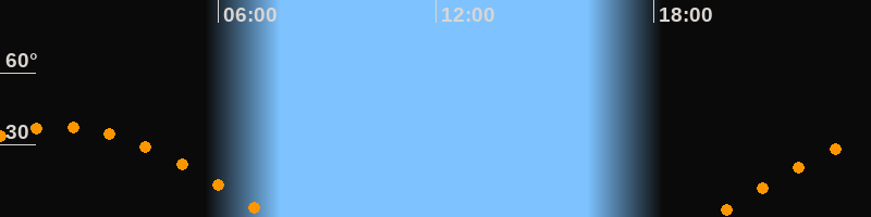 | Untergang | 07:29 Uhr im Westen (αAz = 268°) |