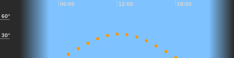 | Höchster Stand (Kulmination) | 12:14 Uhr (h = 37,5°) |