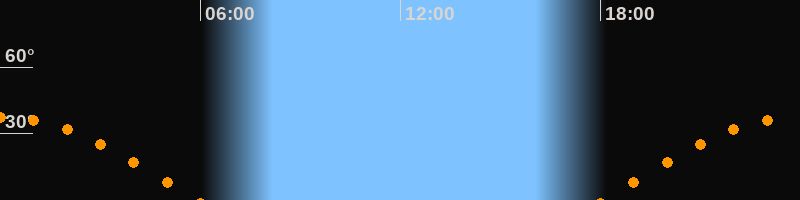 | Aufgang | 18:04 Uhr im Osten (αAz = 92°) |