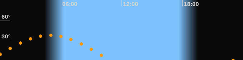 | Höchster Stand (Kulmination) | 04:55 Uhr (h = 37,5°) |
