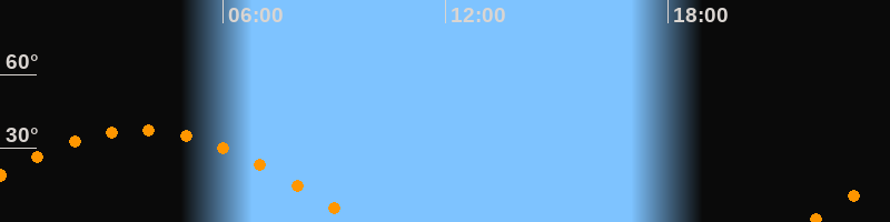 | Höchster Stand (Kulmination) | 03:46 Uhr (h = 37,5°) |